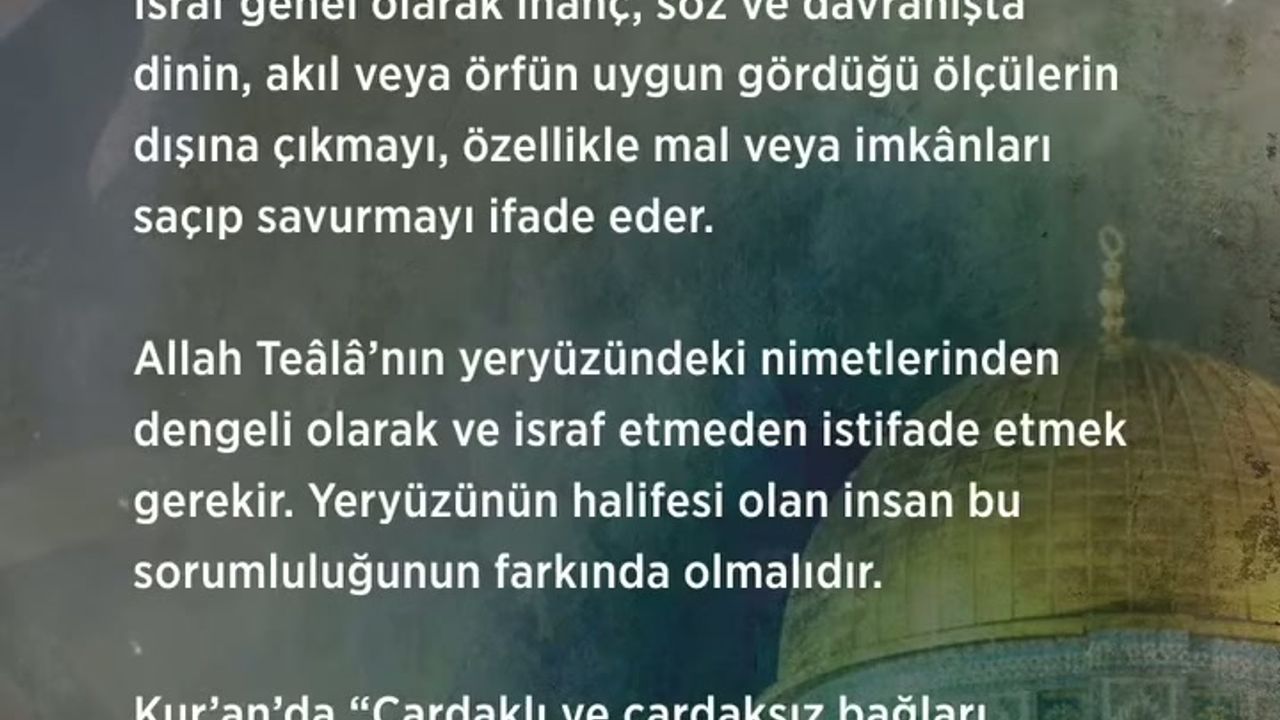 Günlük takvimde yer alan bilgilere göre, israfın hem bireysel hem de toplumsal düzeyde olumsuz sonuçları olabileceği ifade edildi. Kaynakların verimli kullanılması gerektiği ve gereksiz tüketimden kaçınılması gerektiği konusunda tavsiyelerde bulunuldu.