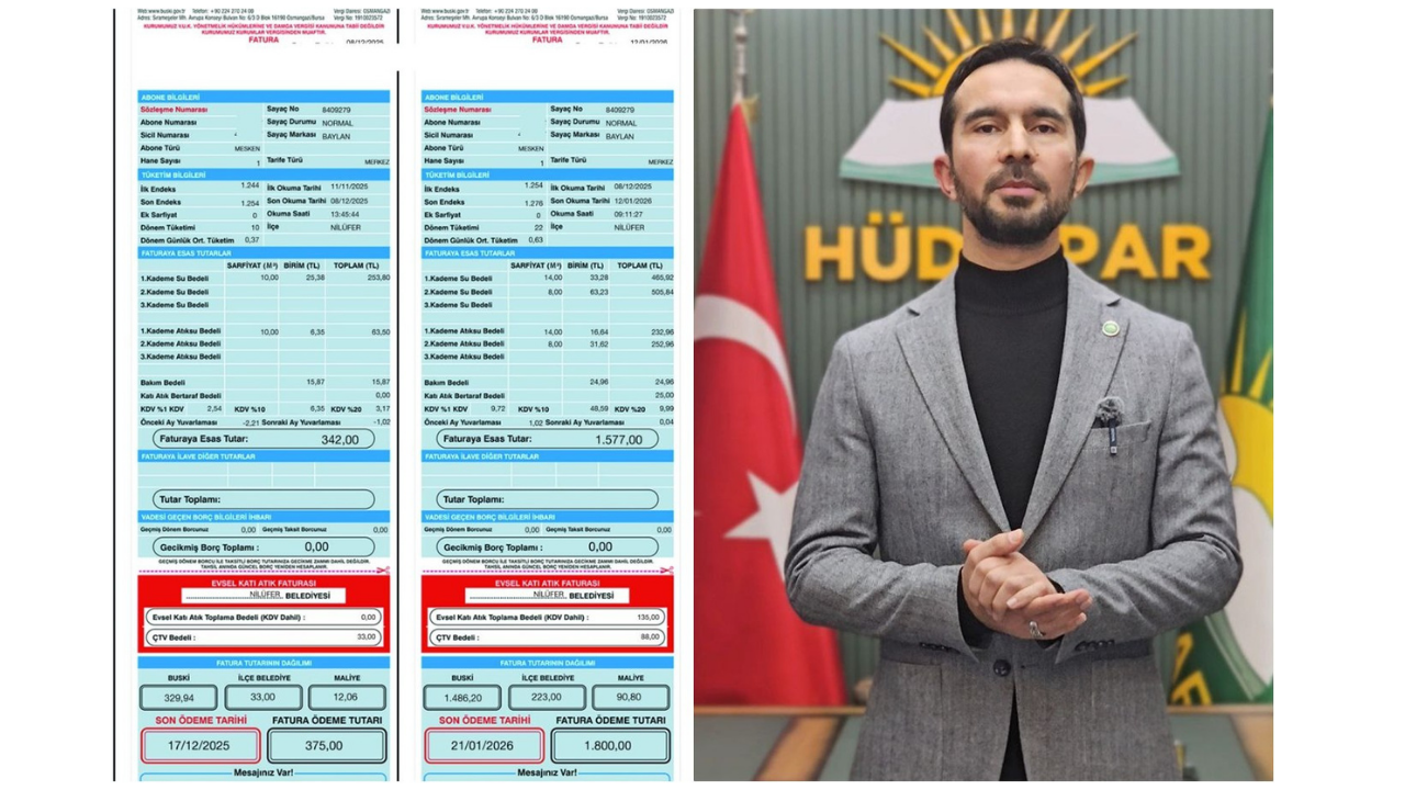 HÜDA PAR Bursa İl Başkanı Zeki Aras, kentteki su faturalarındaki artışlara tepki gösterdi. Bursa’da vatandaşlara gelen faturaların yüzde 200-300 oranında arttığını ifade ederek, zamların iptal edilmesi çağrısında bulundu.