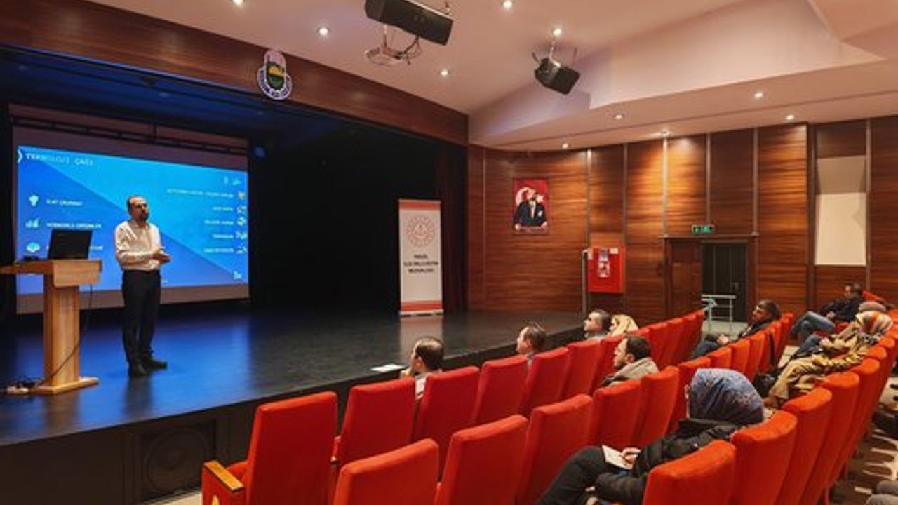 Müdürlük bünyesindeki Özel Büro öğretmeni Gülşah Özaydın ve Kocatepe Teknoloji Tasarım öğretmeni Levent Şanlı'nın sunum yaptığı etkinlikte, öğretmenlerin TEKNOFEST hazırlıkları ve DENEYAP programına katılımları konusunda aydınlatılması hedeflendi.