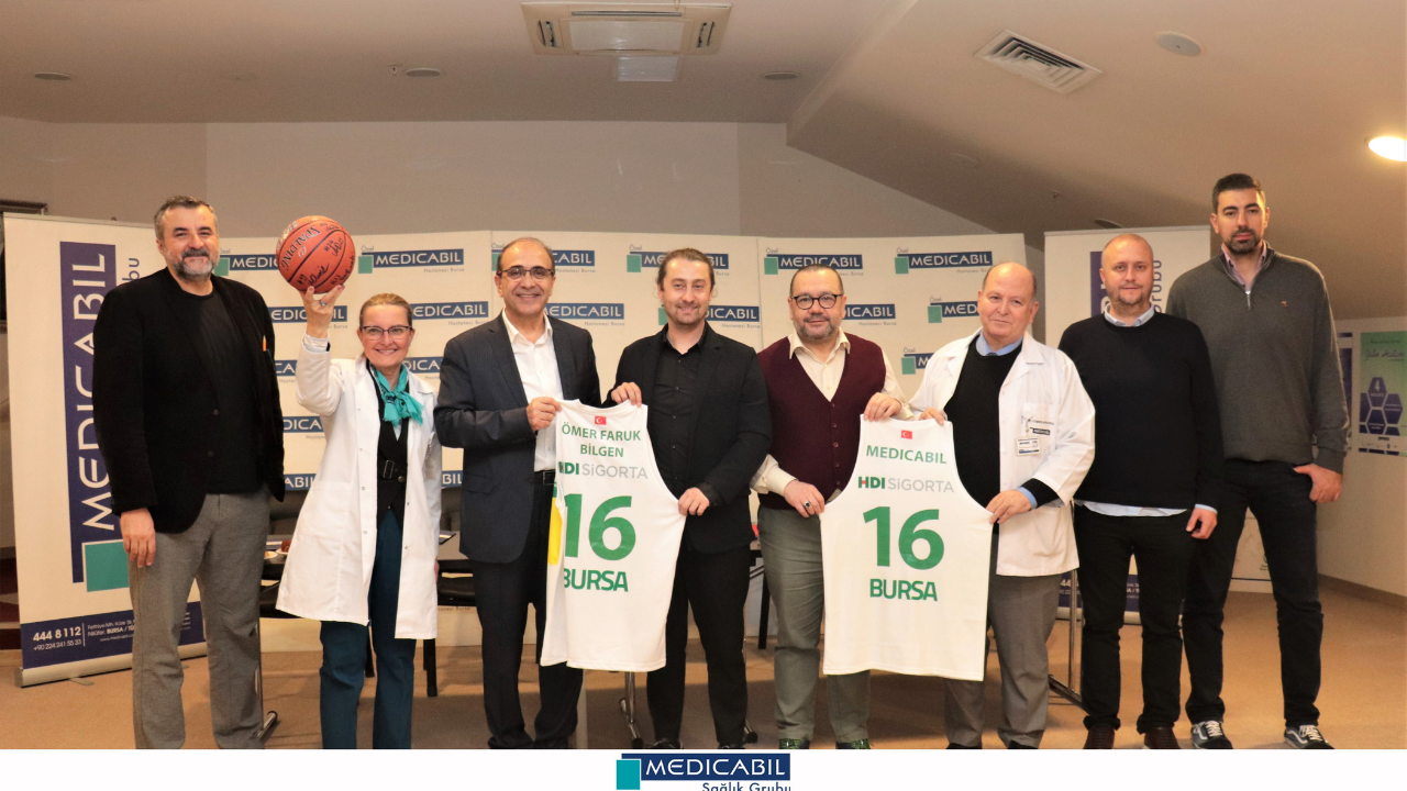 Özel Medicabil Hastanesi’nde gerçekleşen protokol imza törenine; Medicabil Sağlık Grubu Yönetim Kurulu Başkanı Prof. Dr. Ömer Faruk Bilgen, Başhekim Prof. Dr. Aysun Yılmazlar, Frutti Extra Bursaspor Basketbol Kulübü Başkanı Sezer Sezgin, Yönetim Kurulu Üyesi Adnan Orhan, Genel Menajer Nedim Yücel, İdari Koordinatör Erkan Sağlık, Medicabil Hastanesi Mesul Müdürü Dr. Coşkun Hayırlıoğlu ve Medicabil Hastanesi Stratejik Planlama Yöneticisi Tamer Kuday katıldı.