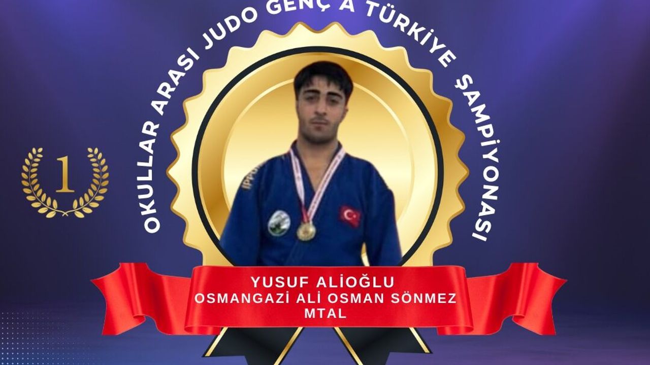 Osmangazi Ali Osman Sönmez Mesleki ve Teknik Anadolu Lisesi öğrencisi Yusuf Alioğlu, Kırklareli'de düzenlenen Okullar Arası Judo Genç A Türkiye Birinciliği müsabakalarında 66 kilogram kategorisinde Türkiye şampiyonu olarak büyük bir başarıya imza attı. 7-8 Aralık tarihlerinde gerçekleştirilen şampiyonada Alioğlu, rakiplerini geride bırakarak kürsünün zirvesine çıktı.